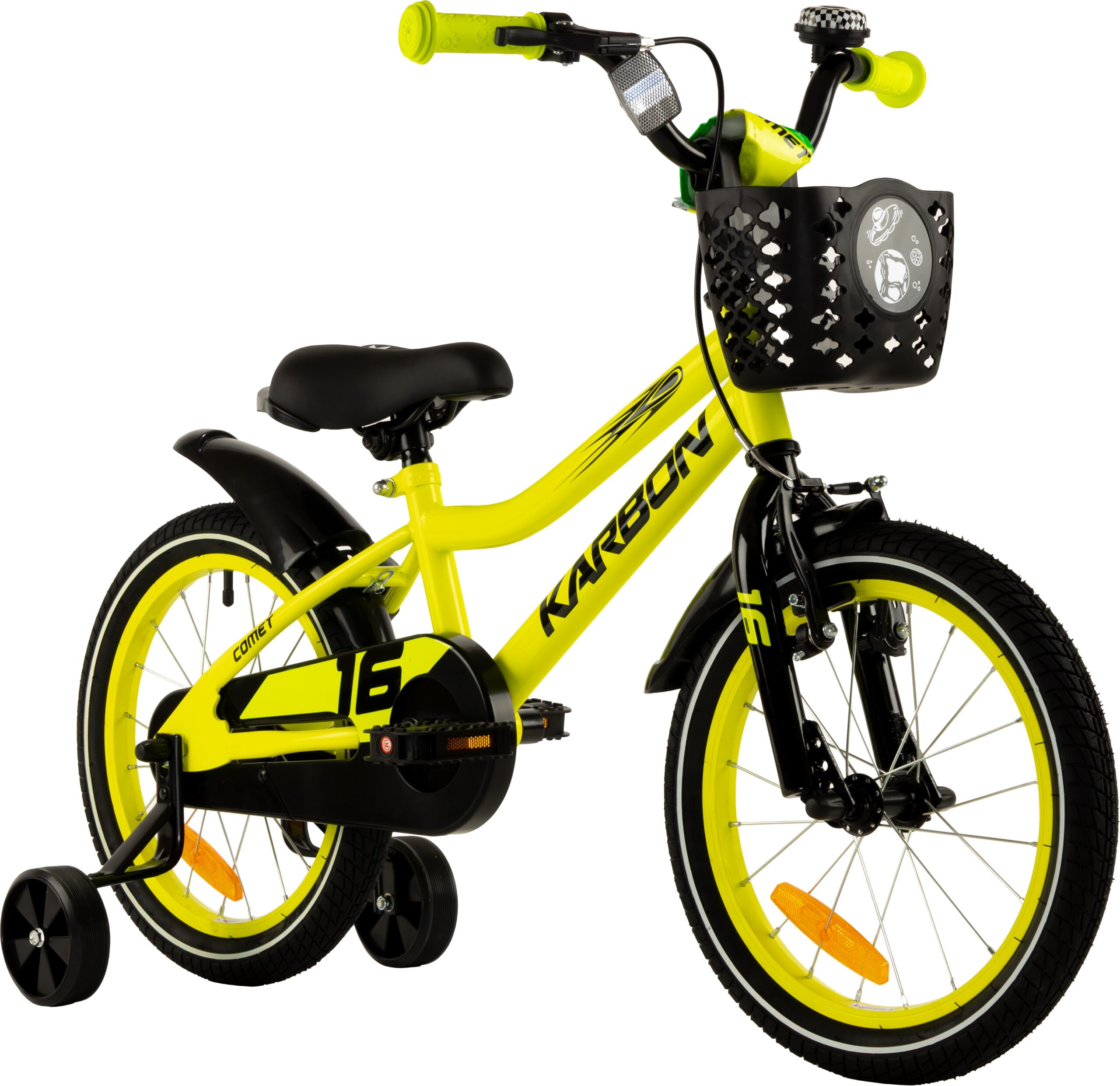 | Wyposażenie | DZWONEK, KOSZYK PRZEDNI, BŁOTNIKI, KÓŁKA PODPOROWE, PROWADNIK |
